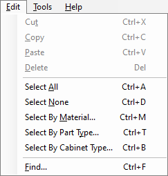 - Select None: This will de-select all of the parts displayed in the Cabinet Parts Section.