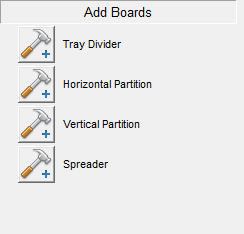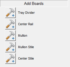- In the section entitled "Add Boards", select the cabinet part that you want to add by clicking on the button in front of that cabinet part.