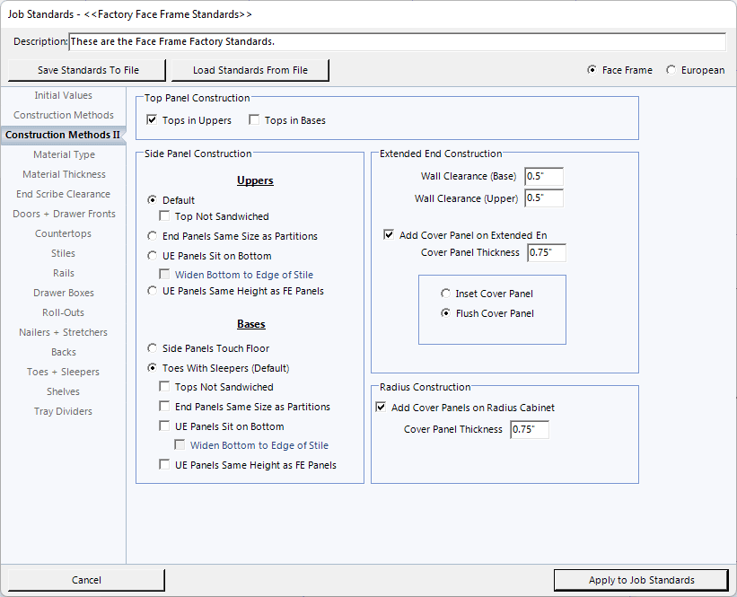 - Toe With Sleepers (Default): If you put on a separate toe so your end panels do not extend to the floor and you sandwich your tops and bottoms between your end panels, turn on this radio button and only this button. This is also the radio button to have on if you use leg levelers.