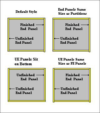 - UE Panels same height as FE Panels: If your unfinished end panels come down to the bottom of your face frame, like your finished end panels, check this box.