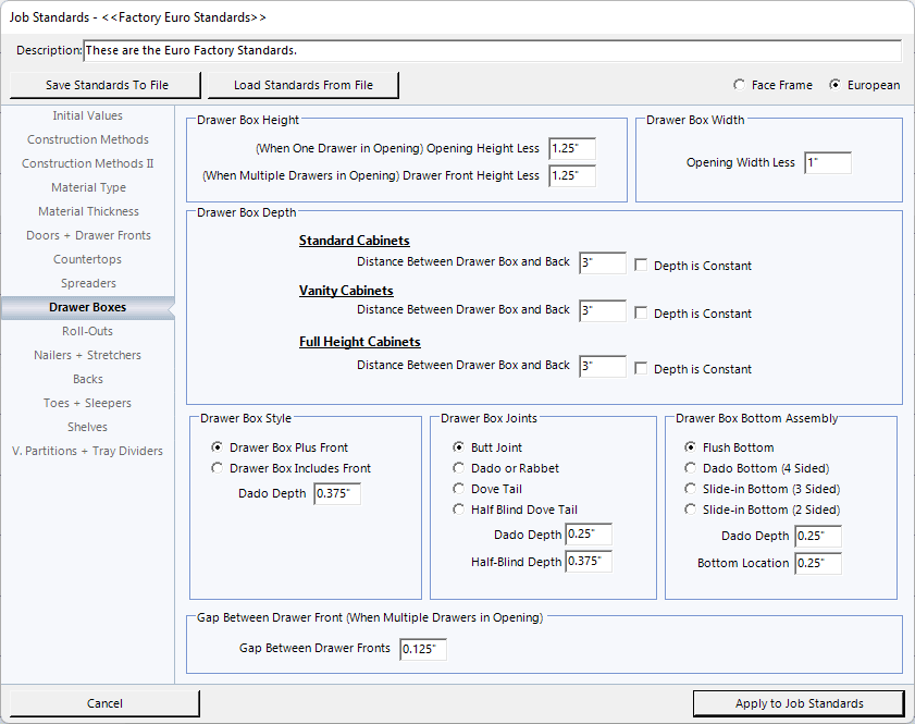 - Drawer Depth: Enter the depth of your drawers for this type of cabinet if you checked Depth is Constant.