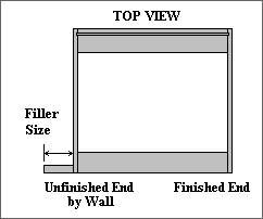 - Filler Width (upper to wall): This filler is helpful in two ways; 1. It gives some space between your cabinet and the wall so that your doors can open further, 2. It gives you a piece that you can scribe to the wall if it is out of plum. Enter the size of the filler you want between your upper cabinet and the wall.