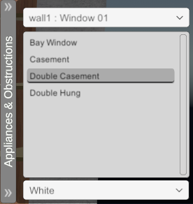 The settings modified for this section are saved with the job itself. These sections change appliances and colors for the room being currently displayed.
