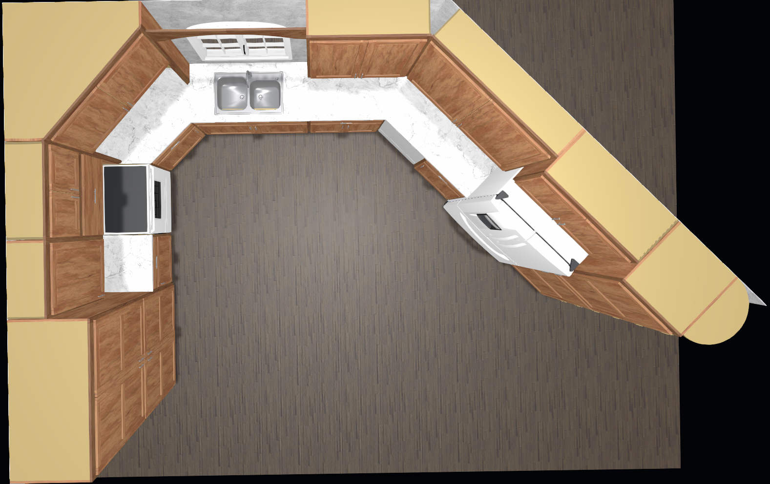 In the Designer, when an appliance or obstruction is placed, a place holder for the floor plan and elevations is displayed. In the Tour, from this section, the actual model of the appliance or obstruction can be changed to be a closer fit to what the customer has in their kitchen. More models will be added over time. |