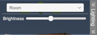 Light Drop Down: This section allow changes to brightness of the selected light source. Currently there is only one light source and that's the Room light. Brightness: Sliding this left or right changes the light intensity. Please note, in the Simple 3D, this will only control the brightness of the appliances. |