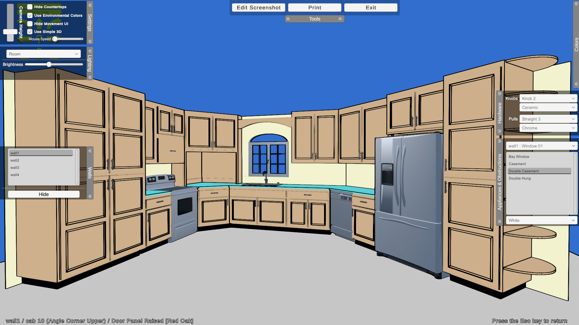 Edit Screenshot: This will hide the UI, and take a screen shot and open it in the default program that opens PNG files, which is by default the Microsoft Picture Viewer. If your default program is set to something more advanced like Paint or Adobe Photoshop, you can modify the picture. Print: This will take the current view you are looking at and print it on your default printer. Exit: This will exit the program. Useful if you're on a Tablet style PC without a keyboard connected to it. |