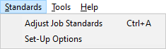 The Standards menu has 2 main options, Adjust Job Standards and Set-Up Options.