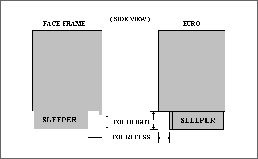 - Distance from Wall to Sleeper: Enter the distance (if any) from the back side of the toe, (or the wall side of the sleepers), to the wall. Often, in new construction, there is drywall mud or other debris where the floor meets the wall. By holding your toe away from the wall by an inch or two, may help avoid problems in leveling your cabinets.